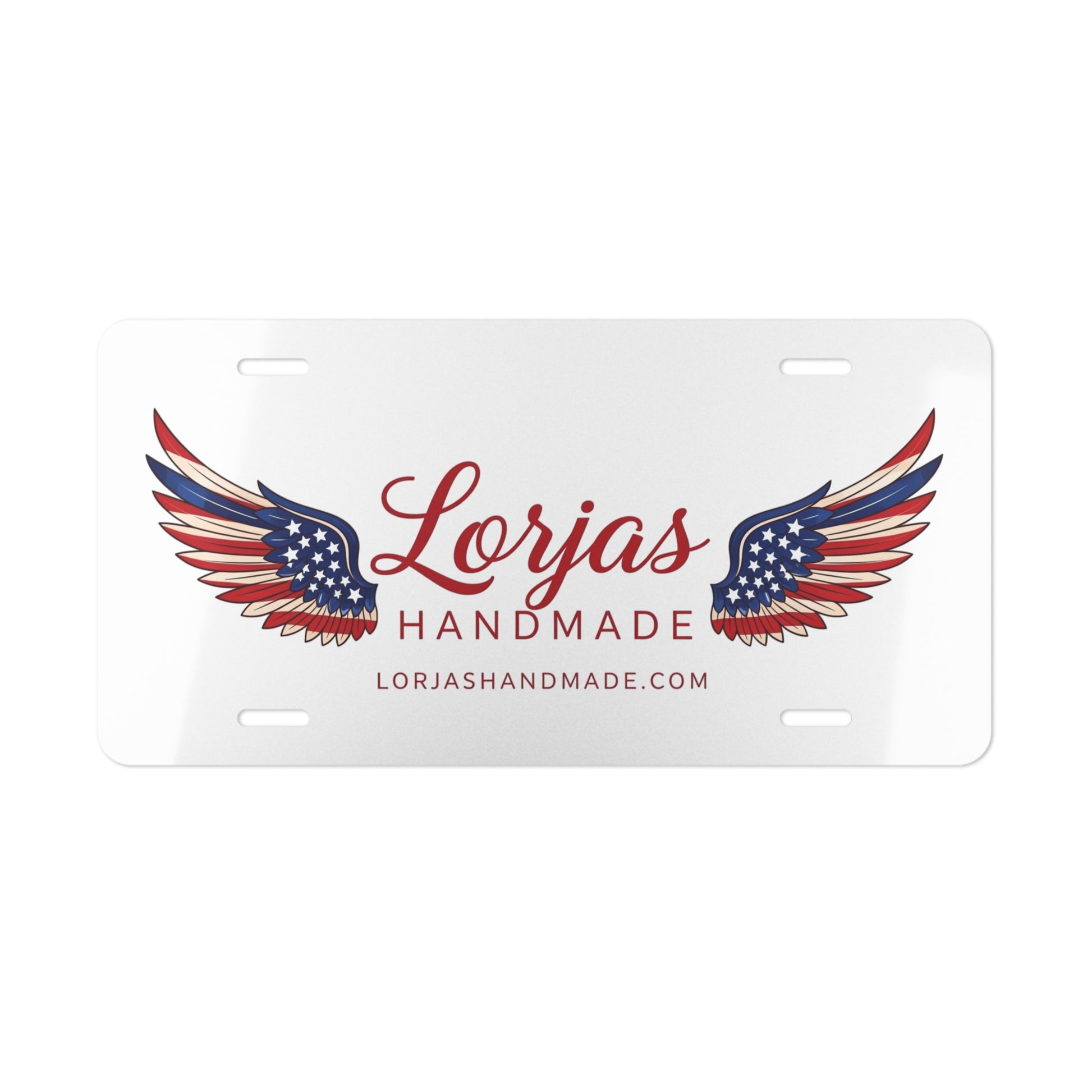 Vanity Plate - "LorJas Handmade" American Flag Wings License Plate | Patriotic Decorative Plate for Cars, Trucks, Motorcycles, Gifts